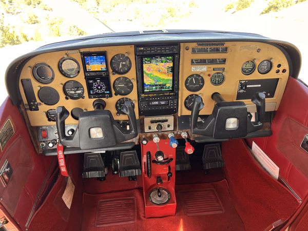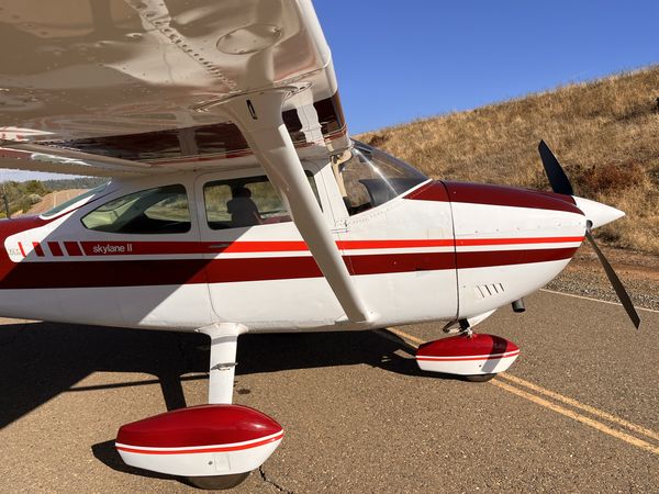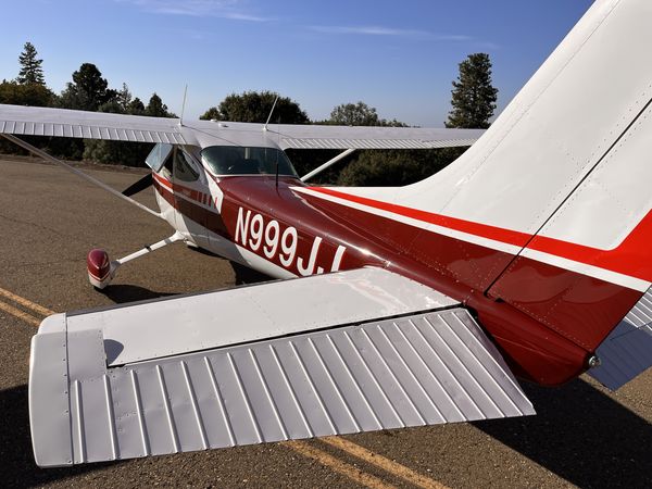 Matterhorn White with burgundy major accent and red minor accent in traditional 1976 Cessna 182 Scheme in very good condition. Overall rated 9 out of 10.