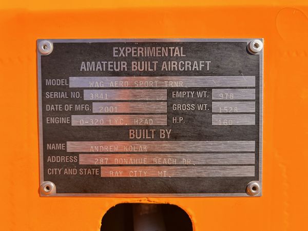 Built in 2001 and flown little. Sold into a Southern California desert hangared collection and not flown much. Then sold into a Bakersfield multi plane owner collection and not flown much. Then traded to Skywagons LLC for another plane. This Wag Aero Acro-Cub is literally like a 160 HP, solo-from-the-back, J3 with electric start and clipped wings with a fully aerobatic capability. And it is like new throughout. Complete logs. No damage history. Almost a new plane.
