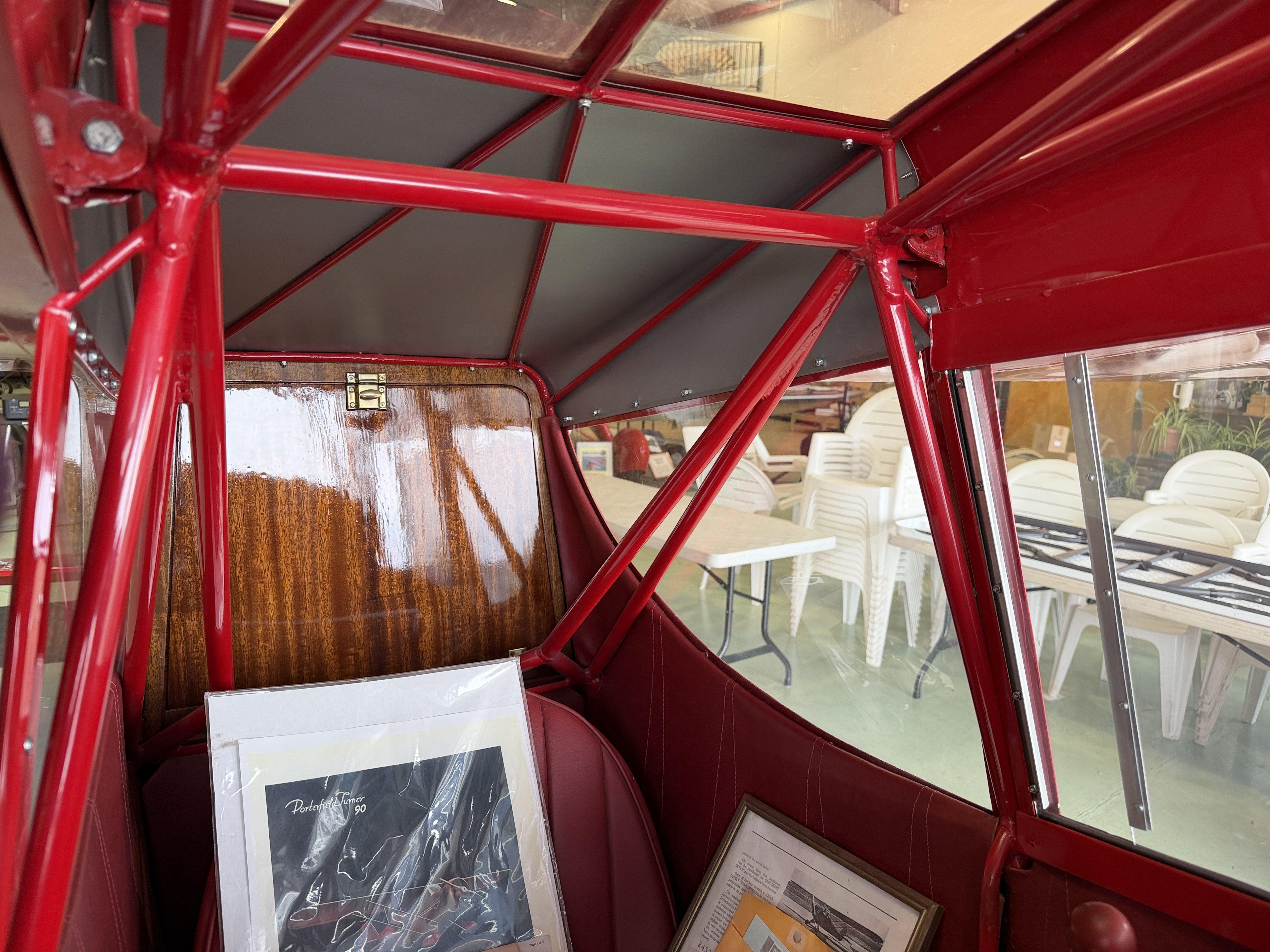 All new fabric, tubing, paint, wood. Overall red. Excellent condition.