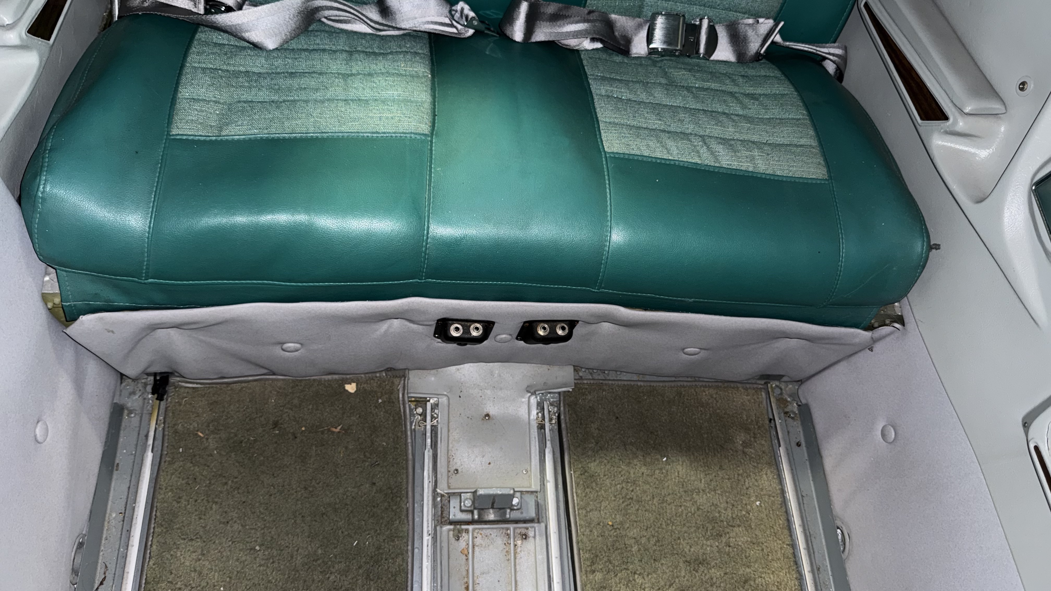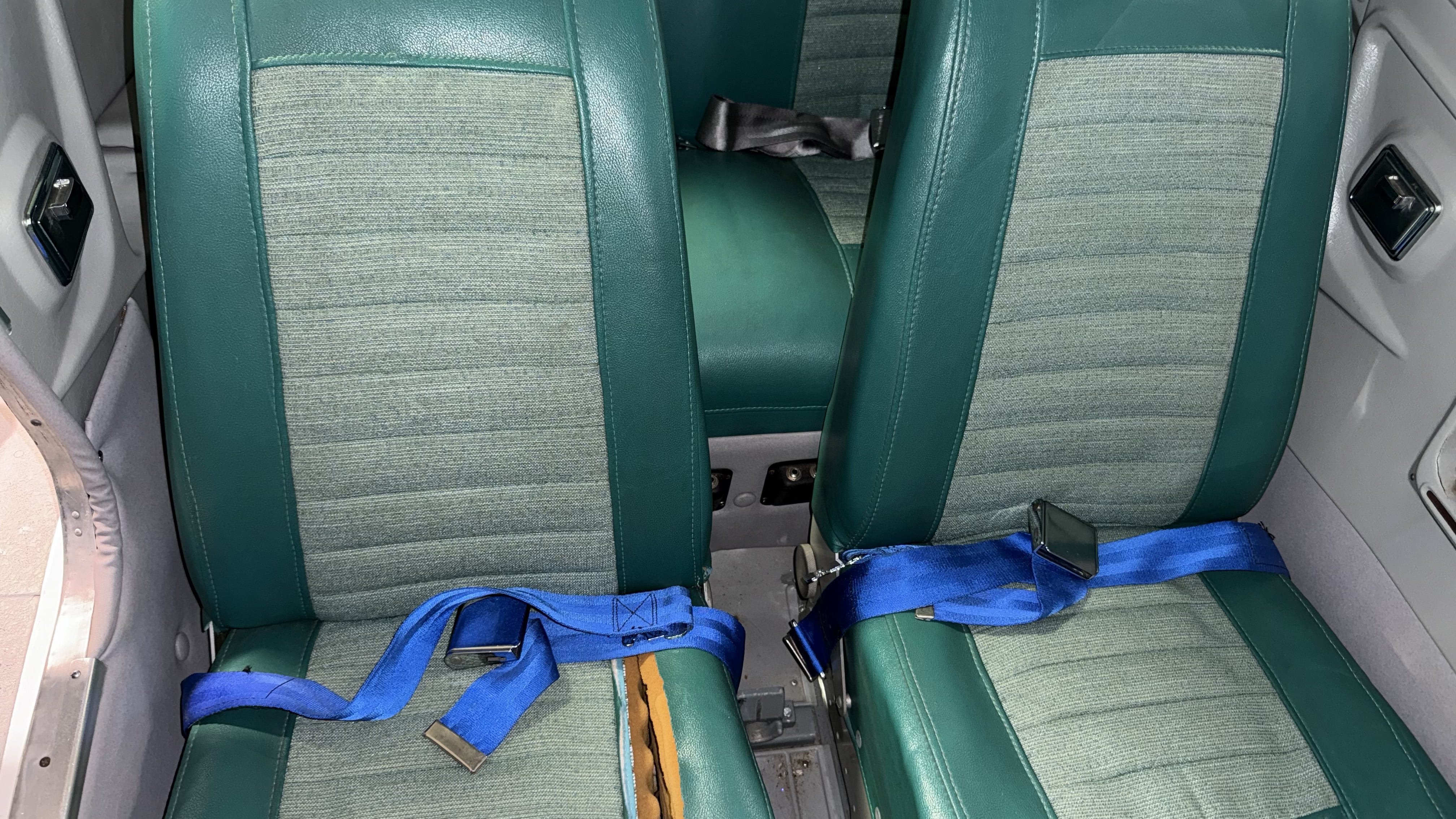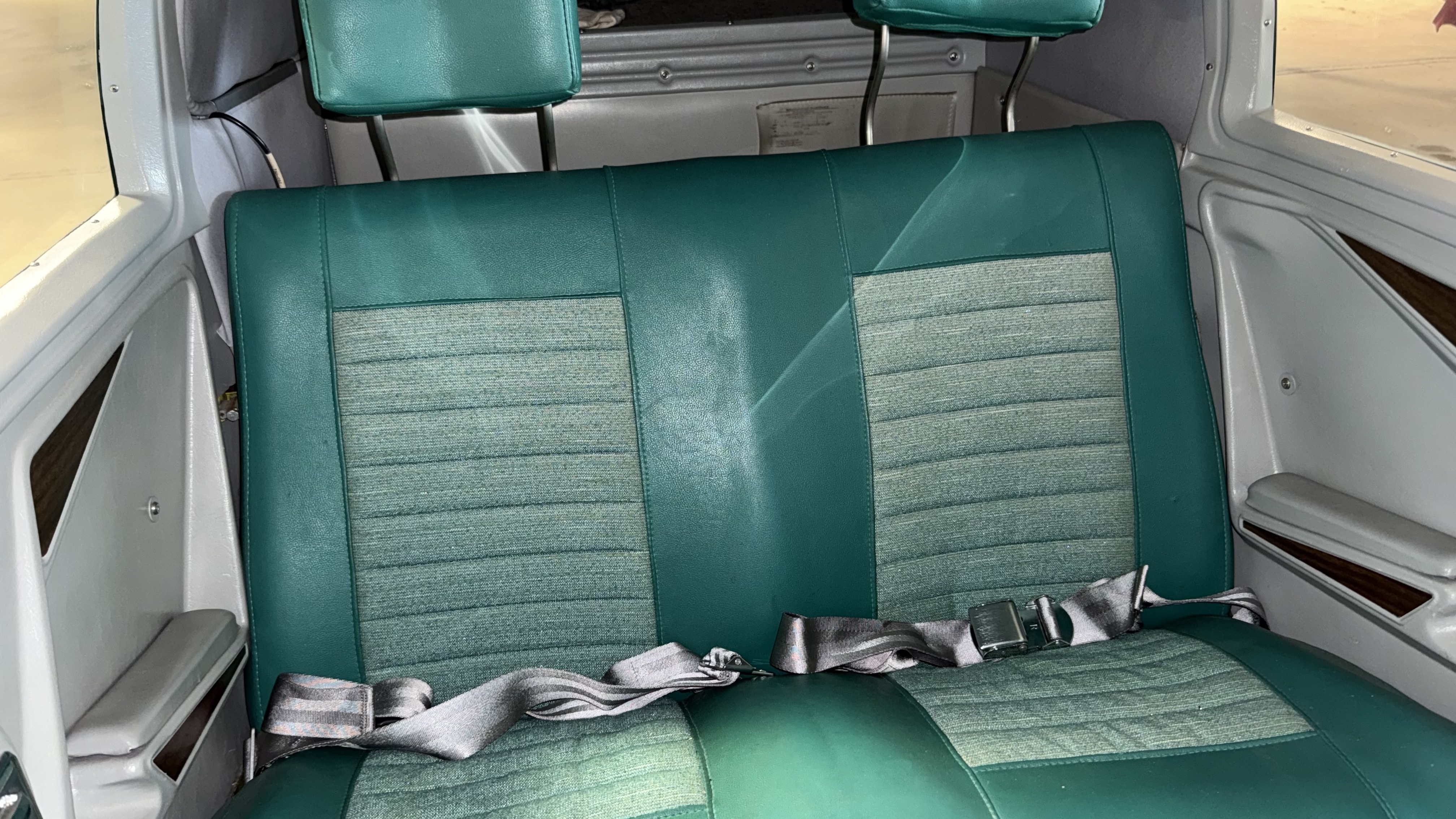 Gray carpet, headliner, and side panels. Green seats. Overall rated 7 out of 10.
